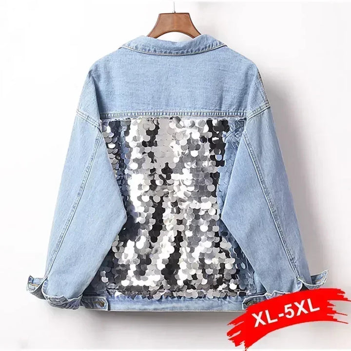 The Back Sequins Denim Jacket combines classic denim appeal with a touch of glamour, making it a standout piece for any wardrobe. Its loose fit and single-breasted closure create a relaxed yet stylish silhouette, while the turn-down collar adds a timeless touch. The highlight of this jacket is the sequined back decoration, which catches the light beautifully, making it perfect for those who want to shine and stand out in any crowd.