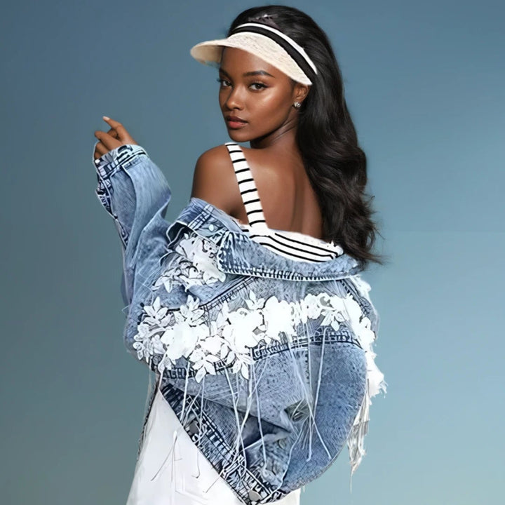The Flower Design Denim Jacket brings together the timeless appeal of denim with the vibrant energy of floral accents. This jacket features delicate flower designs, adding a touch of femininity and charm to a classic denim look. The tassel decoration enhances the bohemian vibe, making this piece perfect for those who want to stand out with a unique and artistic flair. The turn-down collar adds an extra element of style, creating a relaxed yet fashionable silhouette.