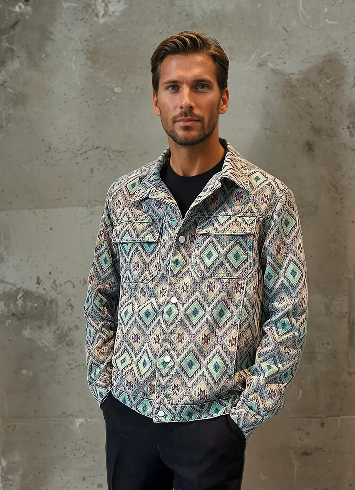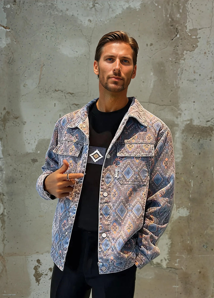 The Pattern Print Denim Jacket brings a unique safari-inspired style with a modern denim twist. Crafted from a blend of polyester and cotton, this jacket combines durability and comfort while offering a bold, adventurous look. The printed pattern adds a striking visual element, making it stand out from traditional denim jackets. The turn-down collar and single-breasted closure give it a classic feel, while the loose fit ensures a relaxed and comfortable silhouette perfect for everyday wear.